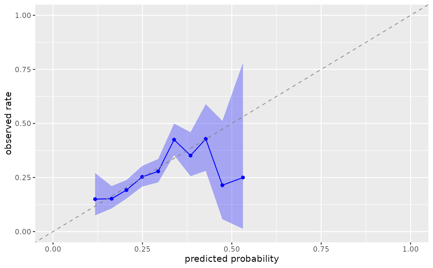 #> Warning: Small sample sizes or extreme proportions detected in bins 9, 10 (n = 8, 3).